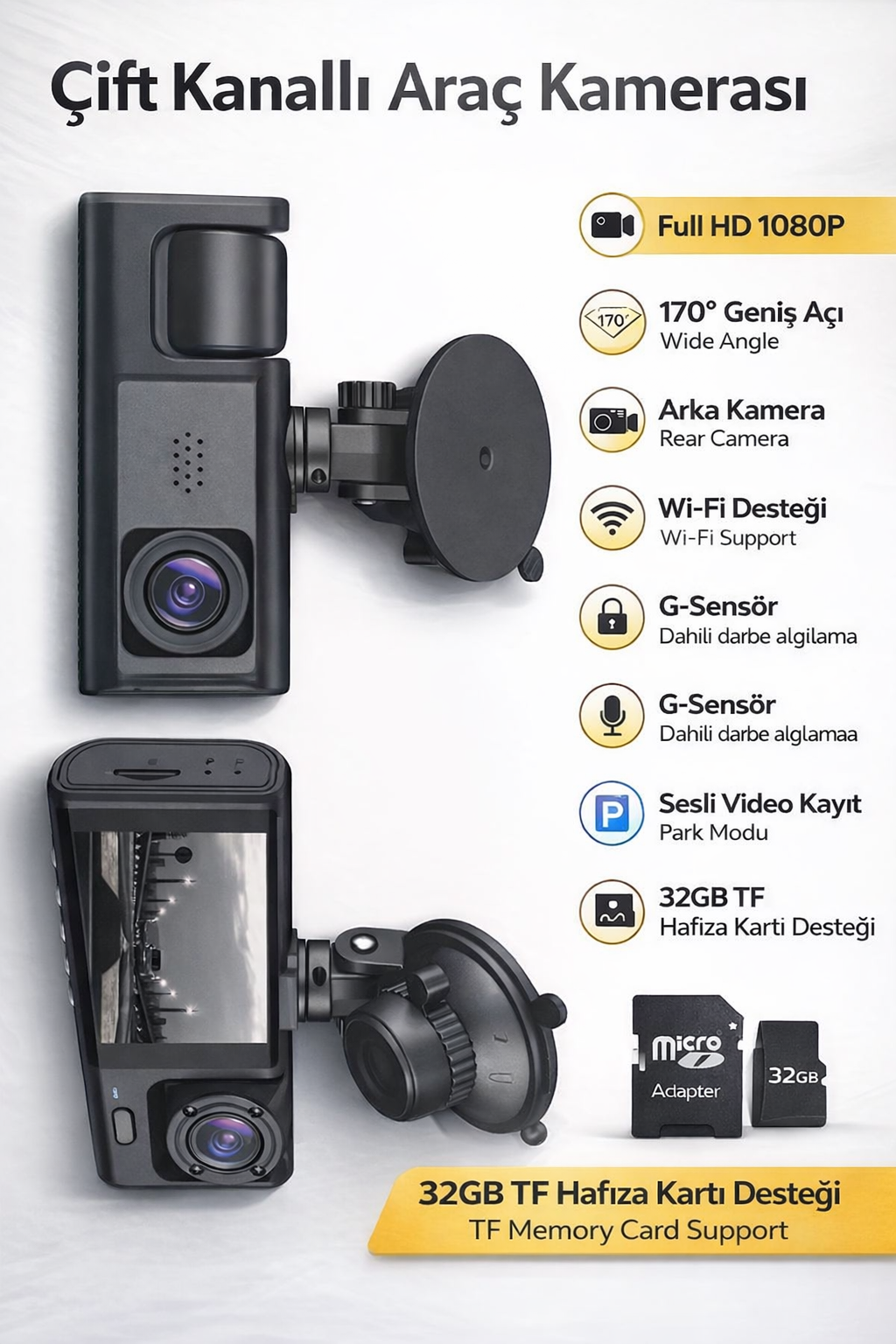 Ürün özellikleri 170° geniş açı, Full HD 1080P